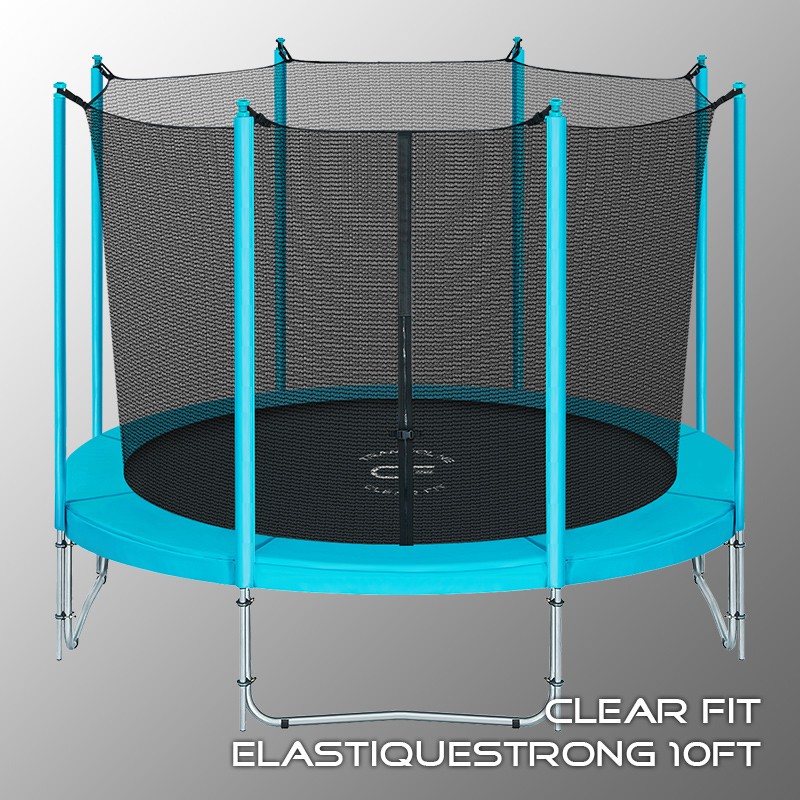 Диаметр батута, м 3.05 Диаметр прыжкового полотна, м 2.62 Материал прыжкового полотна Permatron Пружины, шт 64 Цвет декоративных элементов бирюзовый Максимальный вес пользователя, кг 150 Длина пружин х толщина стальной нити, мм 140 х 3.1 Гальванизированная сталь пружин, метизов, соединений да Трубы каркаса (диаметр x толщина стали), мм 38 х 1.5 Т-образный кронштейн (толщина стали), мм 1.65 Основание батута W-опоры (ноги), шт 4 Труба W-опоры (диаметр x толщина стали), мм 38 х 1.3 2-я оцинковка, антикорозионное покрытие труб конструкции да Количество верхних стоек, шт 8 Трубы стоек (диаметр x толщина стали), мм 25 х 1.2 Внешний слой обшивки стоек, материал PVC да Внутренний (мягкий) слой обшивки стоек (EPE), мм 7.5 Верхняя защитная сеть 100% polyethylene(PE) есть Тип крепления сетки внутреннее Вход: усиленная молния дополнительная защита открывания да Ширина защитного мата, мм 300 Кол-во слоев защитного материала, шт 3 Верхний слой PVC Мягкий центральный слой (толщина EPE), мм 20.45 Нижний слой PE material Лестница, 3 ступени нет Длина х глубина супени, мм - Профиль лестницы (диаметр x толщина стали), мм - Высота лестницы, мм - Закрытое цокольное пространство нет Батуты Clear Fit серии ElastiqueStrong — это современные батуты на усиленной раме из качественных комплектующих. Увлекательный, полезный и главное — безопасный тренажер для всей семьи. В комплект размера 10 футов входят батут с прыжковой поверхностью 2,62 м и защитная сеть на усиленных стойках полной длины (от верхней точки защитной сети до земли), что делает батут безопасным, устойчивым, исключает падение и складывание каркаса. Качественные материалы и мощная рама предусматривают эксплуатацию батута 10ft пользователями до 150 кг. Дополнительно данная модель позволяет установить баскетбольный щит, комплект BasketStrong можно приобрести отдельно. Батуты ElastiqueStrong это прекрасная аэробная нагрузка - улучшения общей физической формы, заряд положительными эмоциями, улучшение работы кардиоваскулярной системы, укрепление вестибулярного аппарата, развитие чувства равновесия и координации в пространстве для пользователей любого возраста. Именно поэтому мы используем только высококачественные комплектующие с большим запасом прочности. В большинстве случаев батуты данного типа устанавливаются под открытым небом, обязательные требования к материалам — это влагостойкость, термоустойчивость, в том числе и к низким температурам, переносимость ультрафиолетовых лучей и износостойкость. Занятия на свежем воздухе укрепляют иммунитет, снабжают организм кислородом, повышают выносливость как у детей, так и у взрослых. Конструкция для обеспечения безопасности выполнена из нержавеющей стали Q195, диаметр стальных труб W - опор и каркаса 38,5 мм. Каркас из труб толщиной 1,5 мм соединяется с помощью мощных сварных Т-образных кронштейнов из металла толщиной 1,65 мм и высококачественных гальванизированных метизов, усиленных резьбовых скоб с мягким уплотнением. Прыжковое полотно — это основной элемент батута. Материал прыжкового полотна Перматрон (Permatron) — эластичный материал, способный возвращаться в исходное состояние при постоянном воздействии с разным усилием. Термообработка волокон материала обеспечивает высокую прочность на разрыв и стрессоустойчивость материала. Это влагостойкий, эластичный термоустойчивый материал с низким коэффициентом усталости, не поддается 