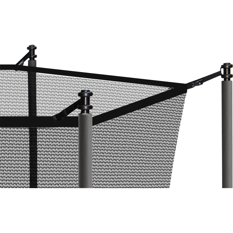 Защитная сеть — обязательный элемент батутов. Инновационное крепление расширяет рабочее пространство, исключает контакт с пружинами и выполнено из безопасных материалов, покрытых мягким матом. Сеть изготовлена из 100%-го полиэтилена, который отличается прочностью, эластичностью, низкой адгезией, морозостойкостью, амортизацией и устойчивостью к ультрафиолету. Диапазон рабочих температур — от -40°C до +80°C. Вход защищен усиленной молнией с дополнительными фиксаторами, что предотвращает случайное открывание. Металлические стойки покрыты мягким вспененным слоем EPE толщиной 9 мм.