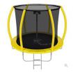 Современные батуты Clear Fit серии SunHop — отличаются комфортом и надежностью. Надежная рама из качественных комплектующих, прочная защитная сеть снабжена прямым креплением к прыжковому полотну и дополнительной защитой входа, наверху каркасное жесткое крепления, сеть не провисает и не слетает во время тренировок. Увлекательный, полезный и безопасный тренажер для всей семьи. Батуты серии SunHop поставляются в оптимальной для комфорта и безопасности комплектации: батут, верхняя защитная сеть, защитный мат и лестница. Размер батута 6 футов с прыжковой поверхностью 1.42 м легко разместить на небольшом участке, он подойдет для детских игр и для тренировок. Верхняя защитная сеть оберегает от падений, усиленная молния и дополнительная защита входа уберегут малышей от случайного входа или падения. Надежный каркас из гальванизированной стали, качественные комплектующие и погодостойкие метизы рамы делает батут безопасным, устойчивым, надежным, гарантирует полную защиту от коррозии и долгий срок службы. Максимальный вес пользователя батута SunHop 6Ft — до 120 кг. Батуты SunHop предназначены не только для детских игр, но и для фитнеса. Благодаря инновационной системе крепления защитной сети значительно увеличено рабочее пространство и надежность конструкции. Тренировки на батуте — это отличная аэробная нагрузка: улучшения общей физической формы, заряд положительными эмоциями, улучшение работы кардиоваскулярной системы, развитие чувства равновесия и координации в пространстве для пользователей любого возраста. Занятия на свежем воздухе укрепляют иммунитет, снабжают организм кислородом, повышают выносливость как у детей, так и у взрослых. Именно поэтому мы используем только высококачественные комплектующие с большим запасом прочности. В большинстве случаев батуты данного типа устанавливаются под открытым небом, обязательные требования к материалам — это влагостойкость, термоустойчивость, в том числе и к низким температурам, переносимость ультрафиолетовых лучей и износостойкость. Конструкция для обеспечения безопасности выполнена из гальванизированной стали, диаметр стальных труб W-опор и каркаса 38 мм. Каркас из труб толщиной 1.3 мм легко соединяется, опоры крепятся в приваренные к каркасу основания, все соединения из высококачественных гальванизированных метизов. Качественная оцинковка всех труб конструкции исключает коррозию, увеличивает срок эксплуатации батута. Прыжковое полотно — это основной элемент батута. Материал прыжкового полотна Перматрон (Permatron) — эластичный материал, способный возвращаться в исходное состояние при постоянном воздействии с разным усилием. Термообработка волокон материала обеспечивает высокую прочность на разрыв и стрессоустойчивость материала. Это влагостойкий, эластичный термоустойчивый материал, не поддается распаду от ультрафиолета. Пружины выполнены из гальванизированной стали толщиной 3 мм, устойчивы к коррозии и долговечны, длина пружин 140 мм для размеров батута 6 и 8 футов, 30 пружин по периметру обеспечивает оптимальную амплитуду и безопасность для нагрузки до 120 кг. Пружинный механизм закрыт мягким многослойным защитным матом — шириной 300 мм, полностью закрывает раму, пружины и все твердые элементы окантовки. Внутренний мягкий амортизирующий слой EPE толщиной 15 мм, далее термостойкий с