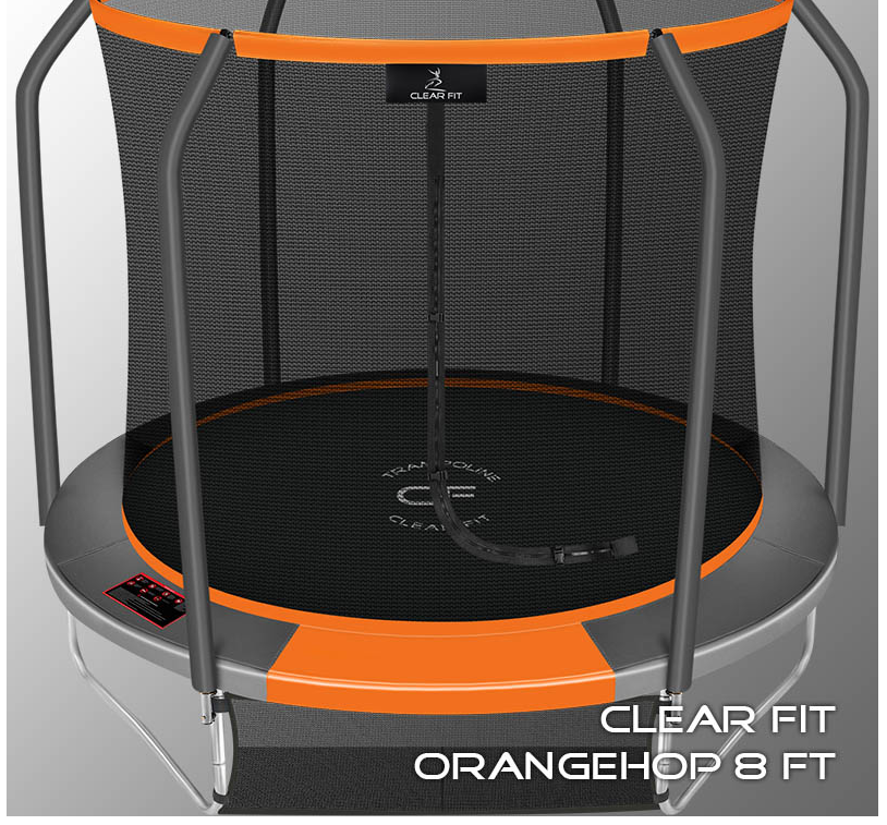 Главная | Велосипеды и батуты в Екатеринбурге в наличии | Батуты для дачи Clear Fit Клеар Фит Франция | Каркасный батут Clear Fit OrangeHop 8Ft с сеткой спортдоставка
