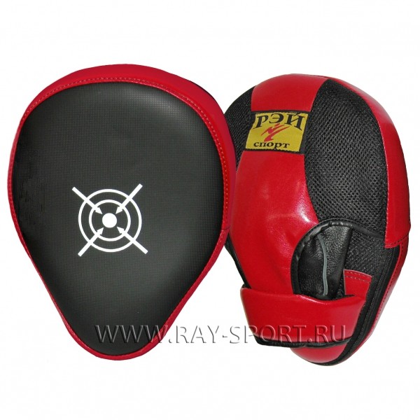 Лапа боксёрская загнутая РЭЙ-СПОРТ Л1202И / 22х29 см, защита пальцев, искожа