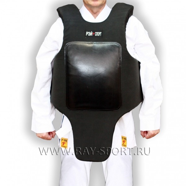 Демпфирующий вкладыш с усиленной защитой области солнечного сплетения надёжно защищает грудную клетку, боковые части туловища и область паха при ударах руками и ногами в полную силу.