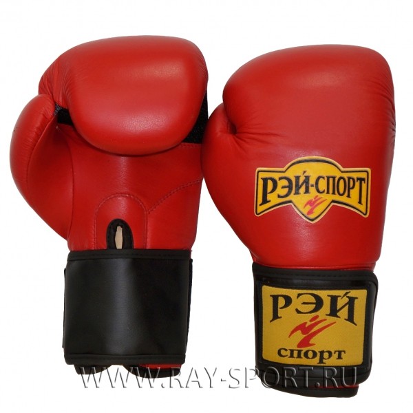 Перчатки боксёрские РЭЙ-СПОРТ эЛБ61КС /натуральная кожа,М, красный, синий, черный,10 унций