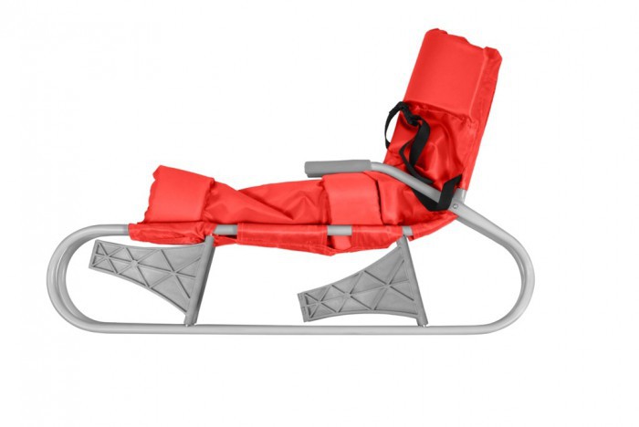 Лёгкие складные санки. • Мягкий матрасик и подушечка в спинке. • Травмобезопасные подлокотники и автоматический ремень безопасности в комплекте. • Выдерживают массу 20 кг.